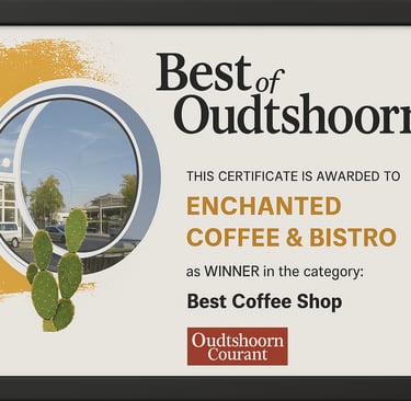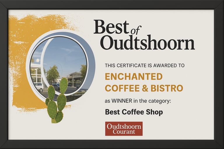 Explore the delightful offerings at Enchanted Coffee Shop in Oudtshoorn, South Africa.